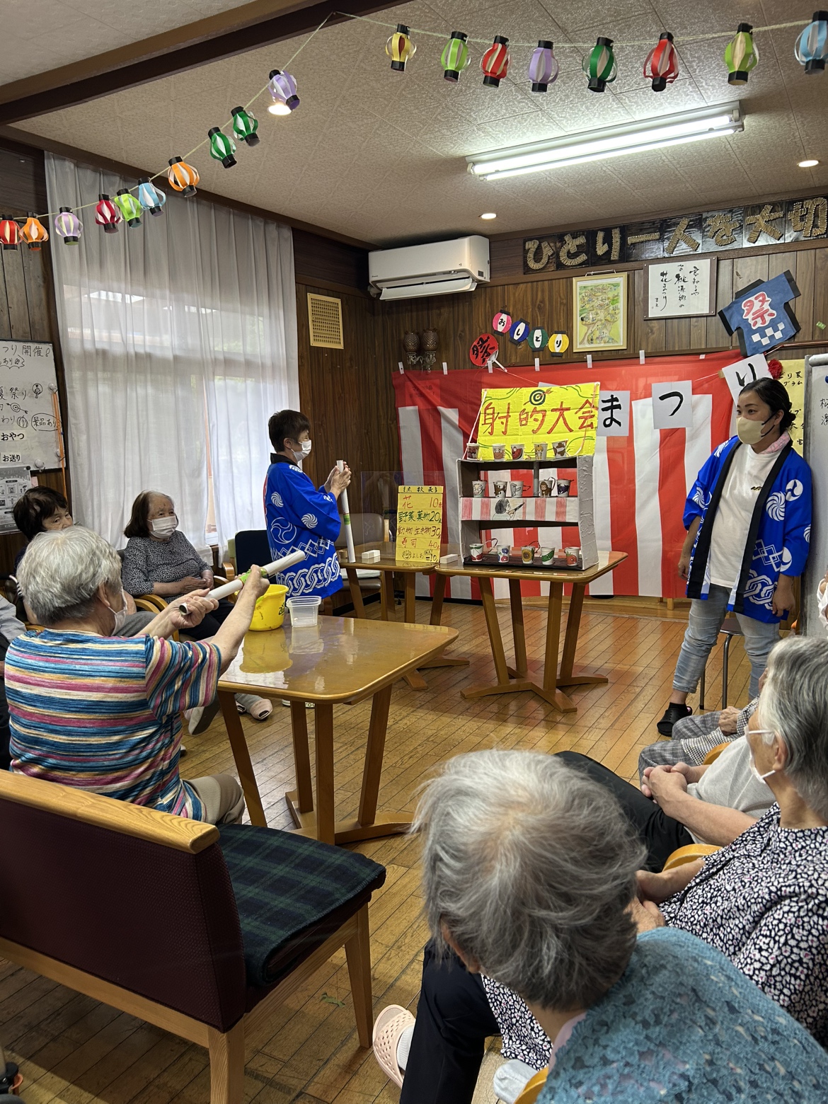 🏮デイケアの家おしどりです🏮 この夏、皆さんと一緒に ぜ〜んぶ手作りの夏祭り を開催しました✨ 射的の的🎯から鉄砲、スイカ割りのスイカ🍉まで準備して、射的には豪...