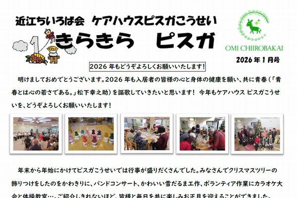 ピスガこうせいは、お世話をされるばかりでなく、お互いにできることを考えてしていただく役割のある生活を目指しています。その他、地域の小学生たちが、自分たちで考えたゲームなどを入居者とともに行う交流会があり、世代間交流を楽しまれています。
