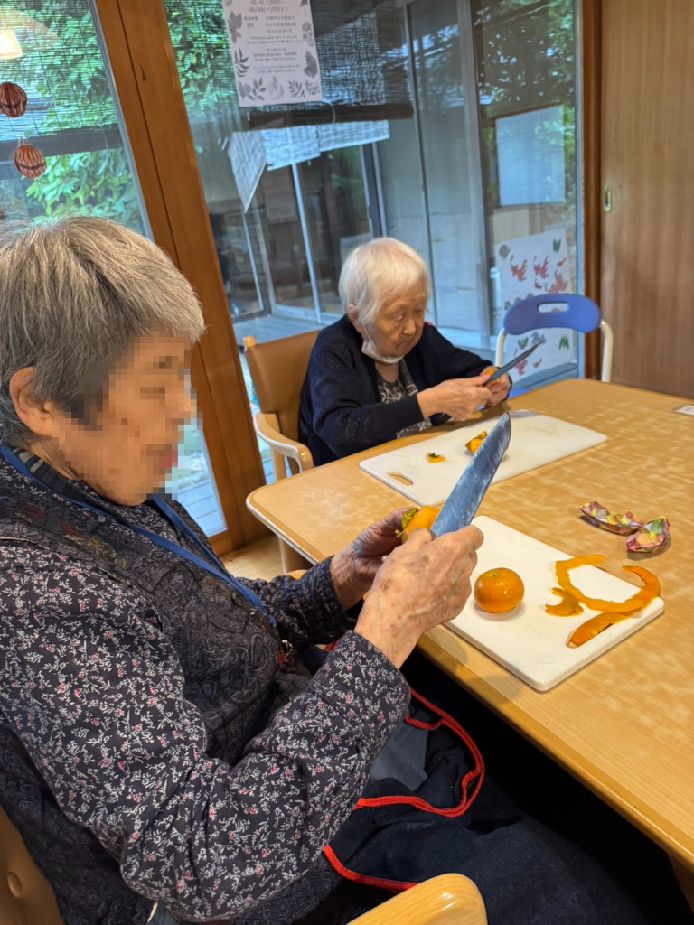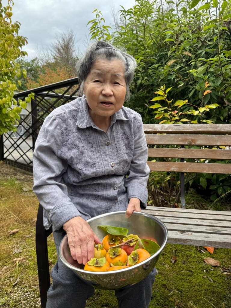 おやつと夕食に少しずつ柿を添えさせていただくと「甘い柿やわ」「買って来たのかと思った」など好評でした💕