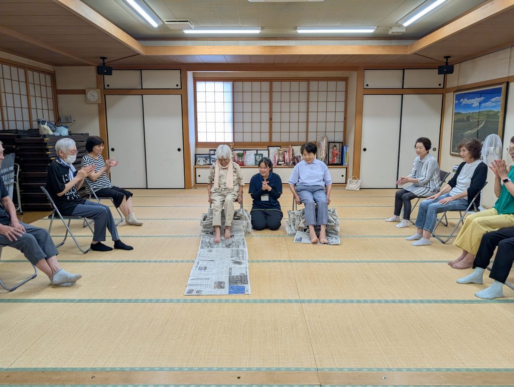 今回は、20枚繋げた新聞紙を足の力だけで手繰り寄せる**「足巻きリレー」や、足で蹴った俵型おじゃみをサークルゴールに入れる「おじゃみキックゲーム」**で大盛り上がり!👣⚽️