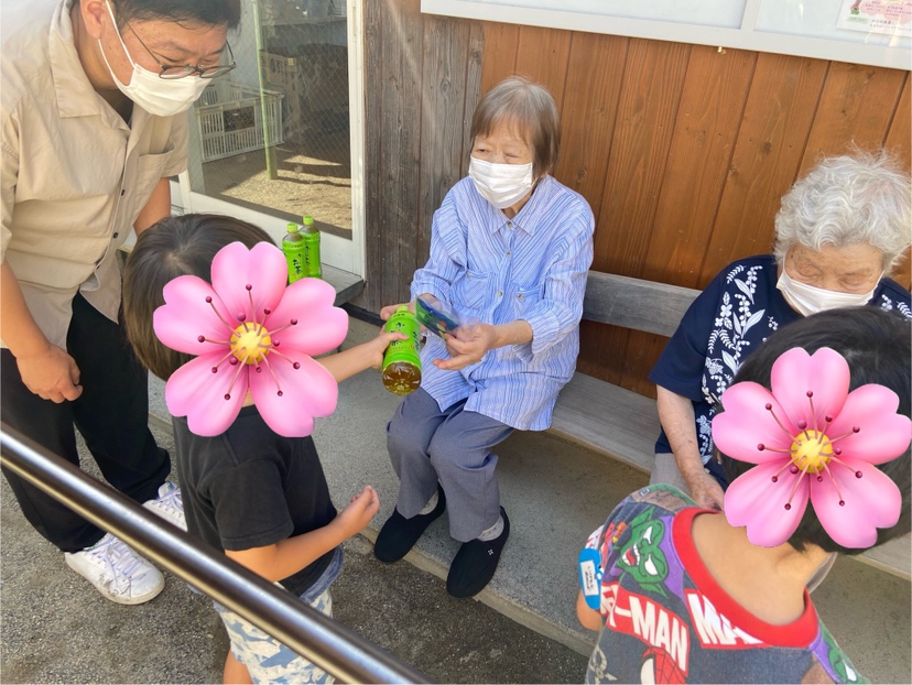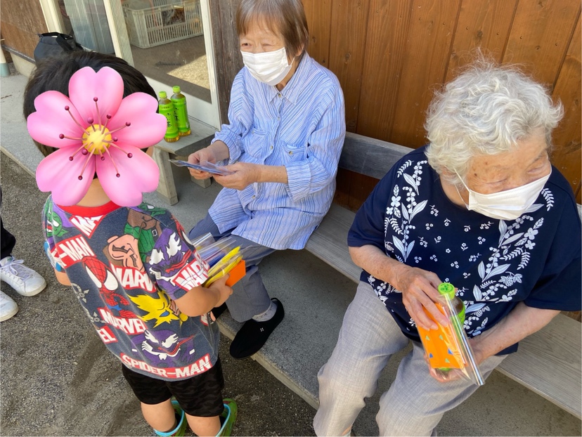 園児たちから手作りのティッシュケースをいただき、入居者さんは「かわいいね」と何度もながめて大切に持ち帰られました💐
