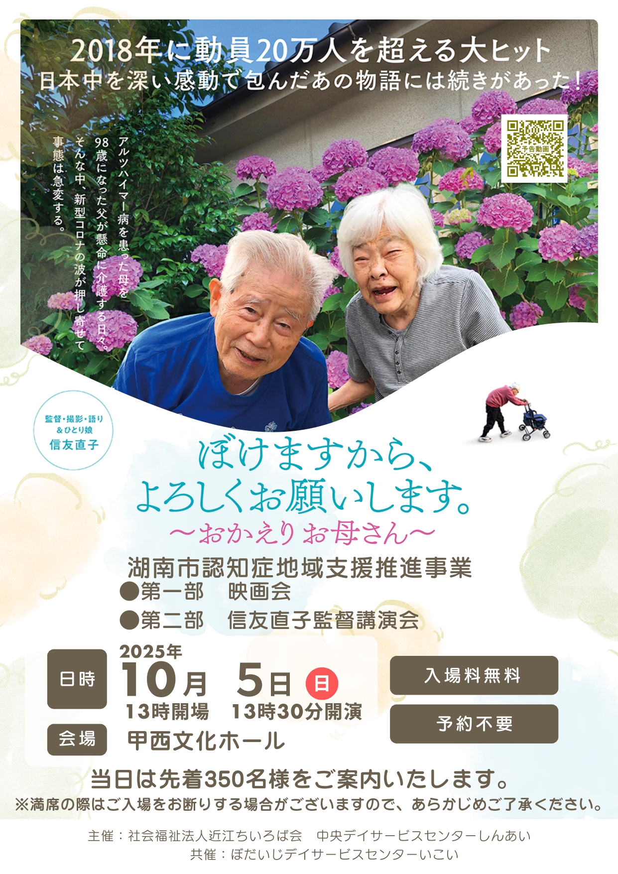 📢 中央デイサービスセンターしんあいからのお知らせです 湖南市認知症地域支援推進事業の一環として、 ドキュメンタリー映画「ぼけますから、よろしくお願いします。お...