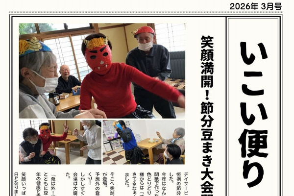 「いこいだより」を発行しました。 PDF ファイルでご覧いただけます。 (新しいタブで表示します) 3月号 NEW 笑顔満開! 節分豆まき大会開...